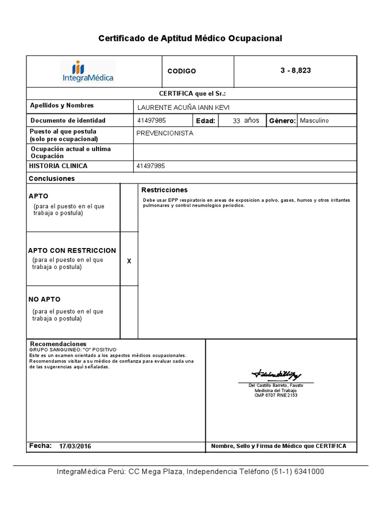 El informe de aptitud psicofísica