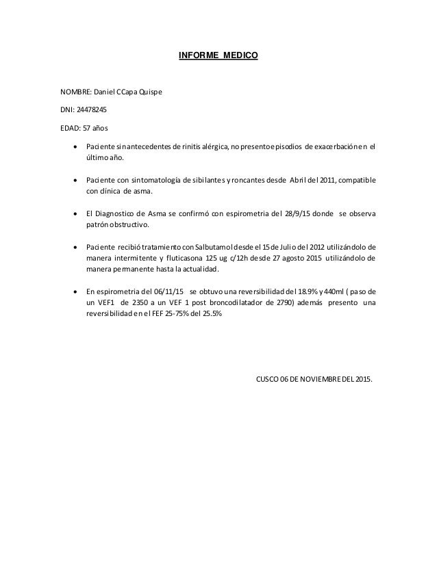 ¿Qué información debe incluir el informe médico?